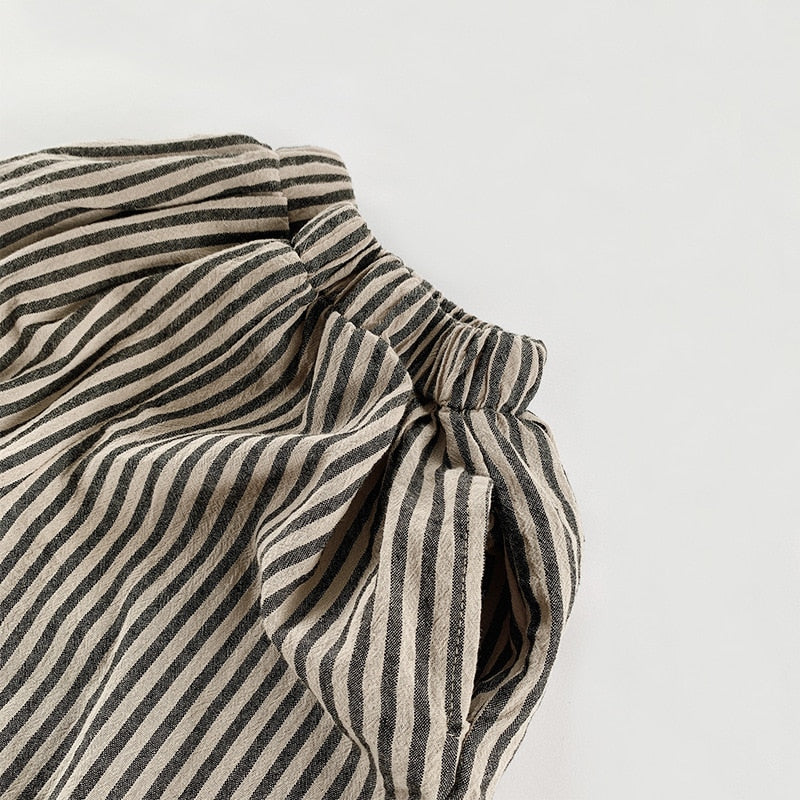 These shorts are suitable for both boys and girls, and come in a variety of sizes from 12 months to 4 years old. They feature a low waist and a striped pattern, and are made from a blend of cotton and linen for optimal comfort. The shorts are easy to put on and take off, thanks to their elastic waist closure. They are designed to fit true to size, so you can choose your normal size with confidence. Please note that this listing is for shorts only; the shirt in the photo is not included.