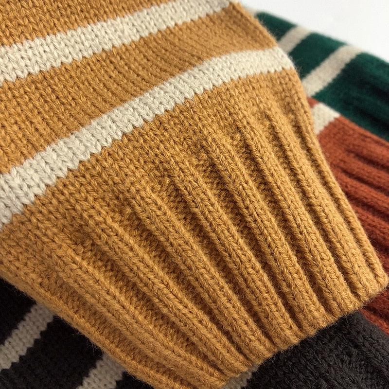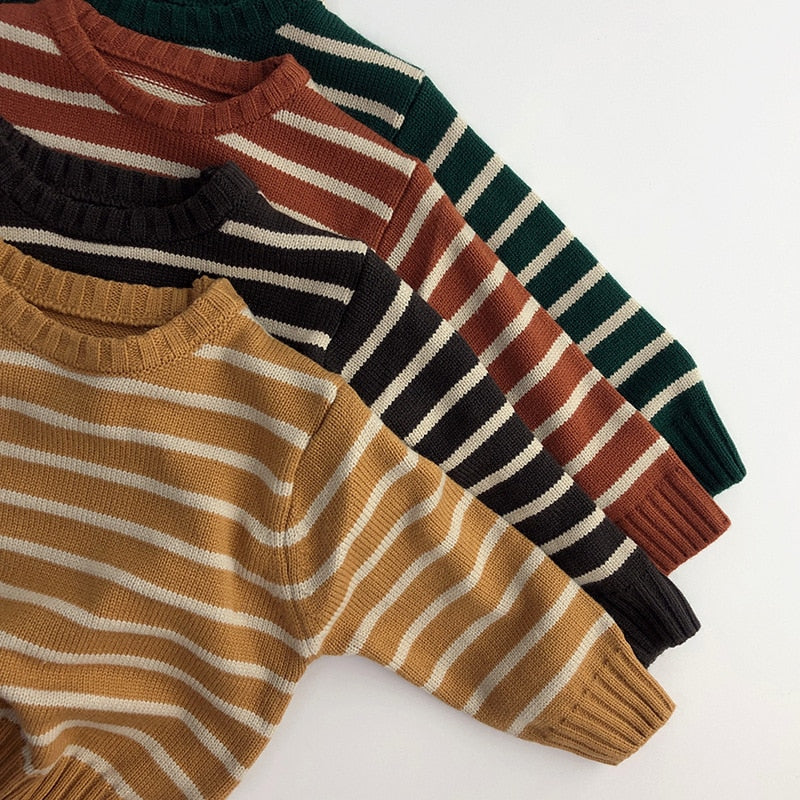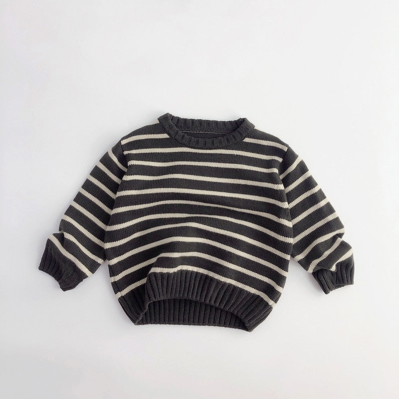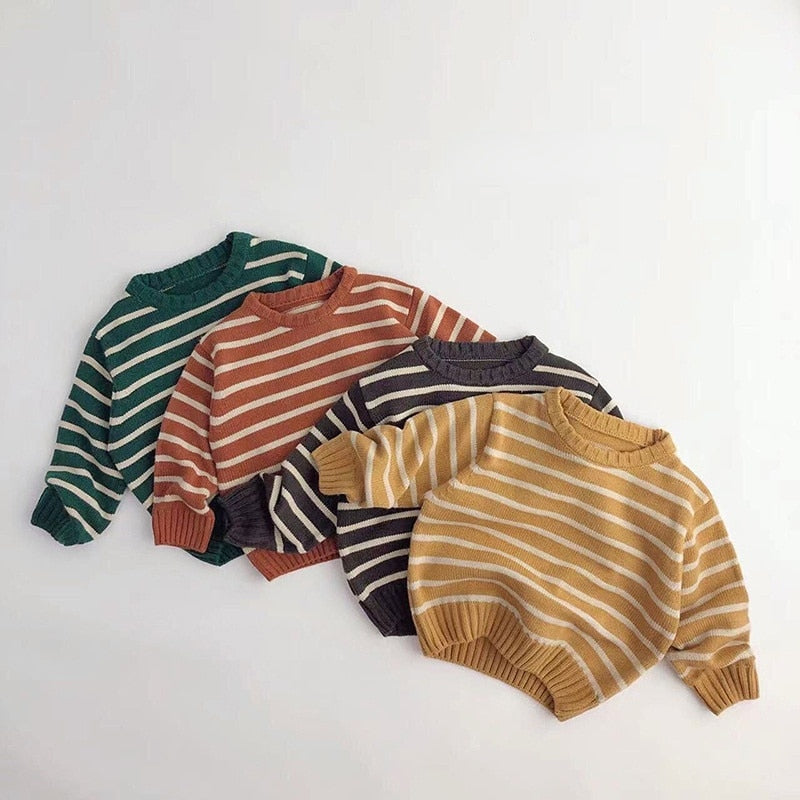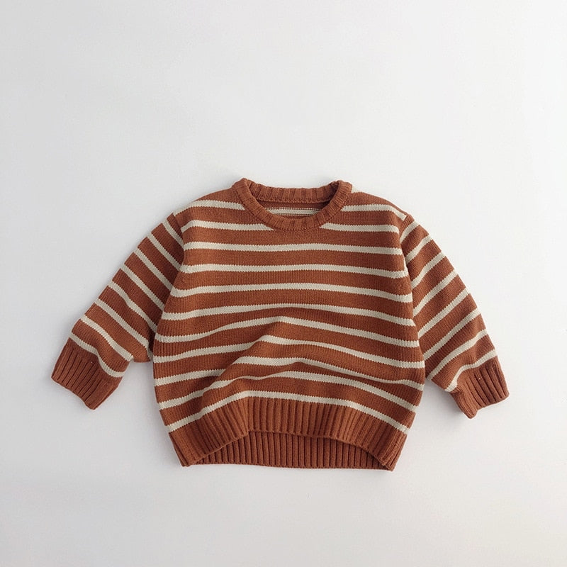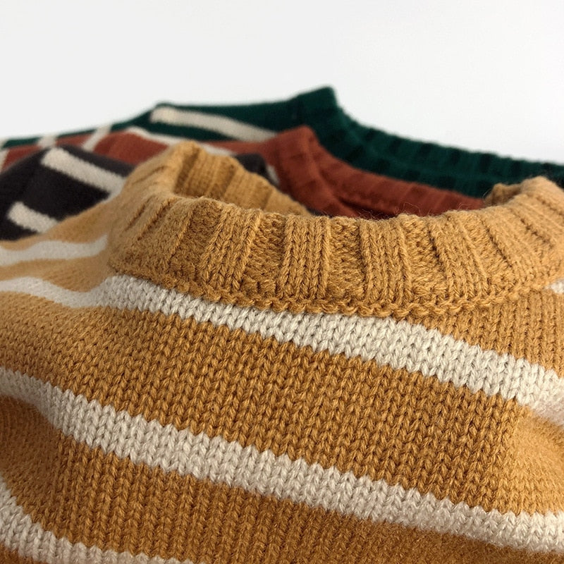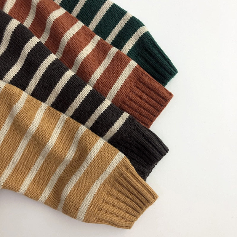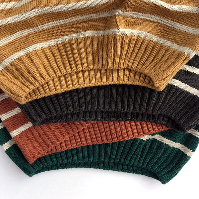 Unisex Kids' Casual Striped Long-Sleeved Knitted Cotton Pullover