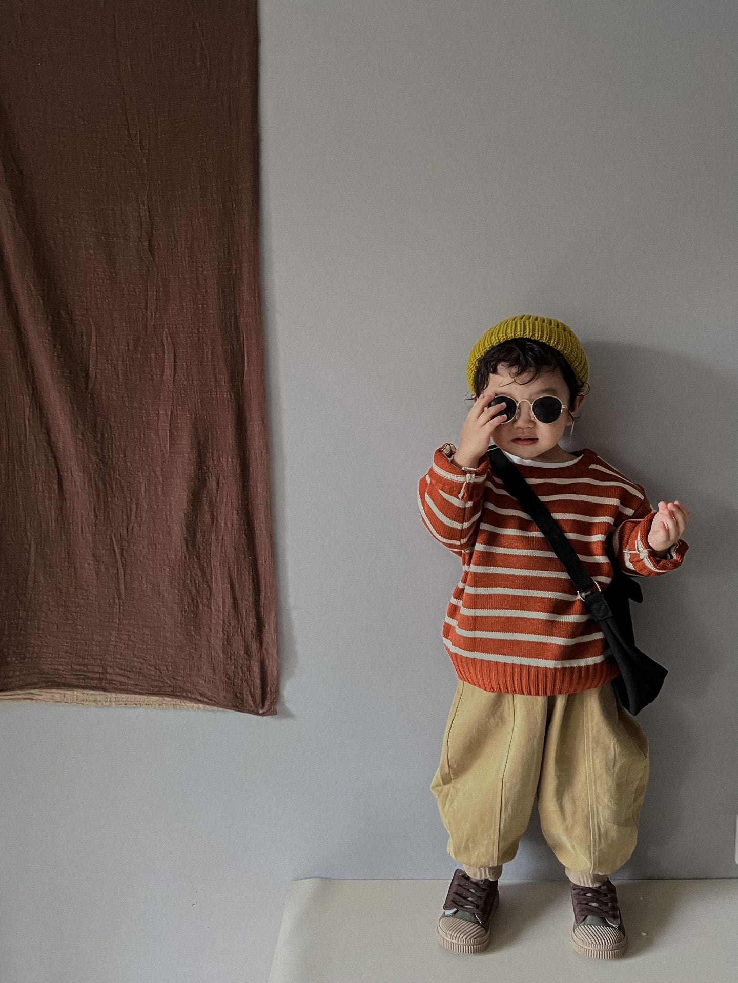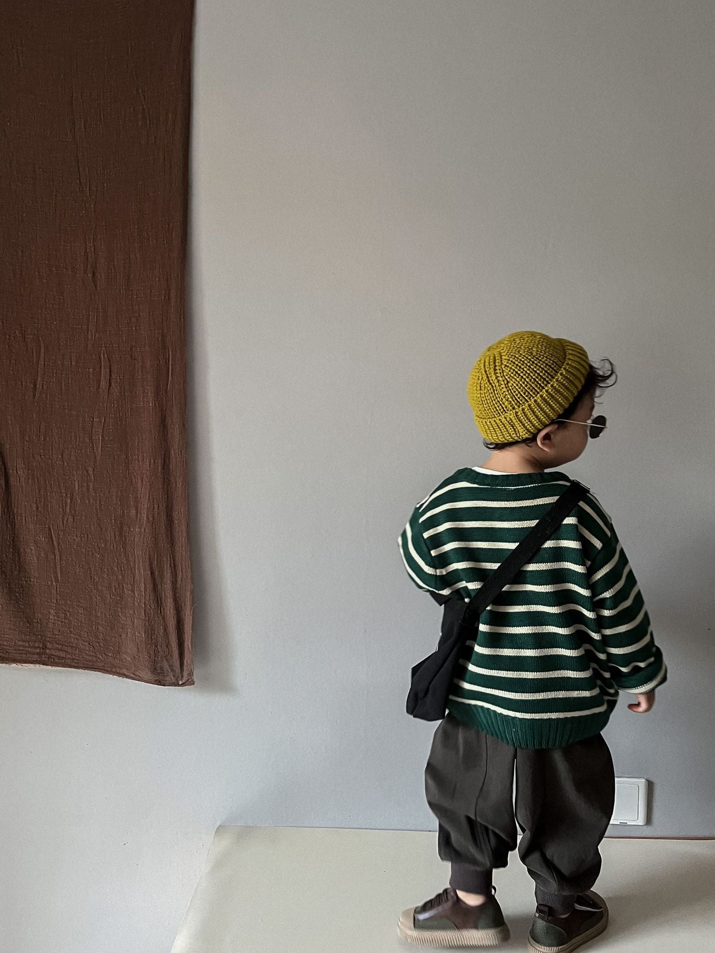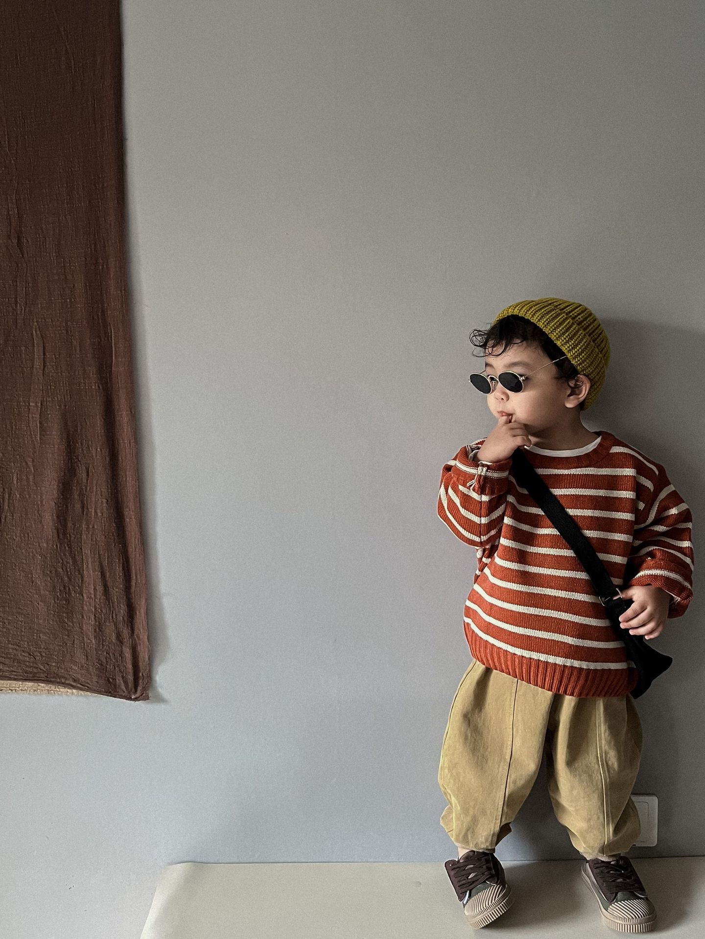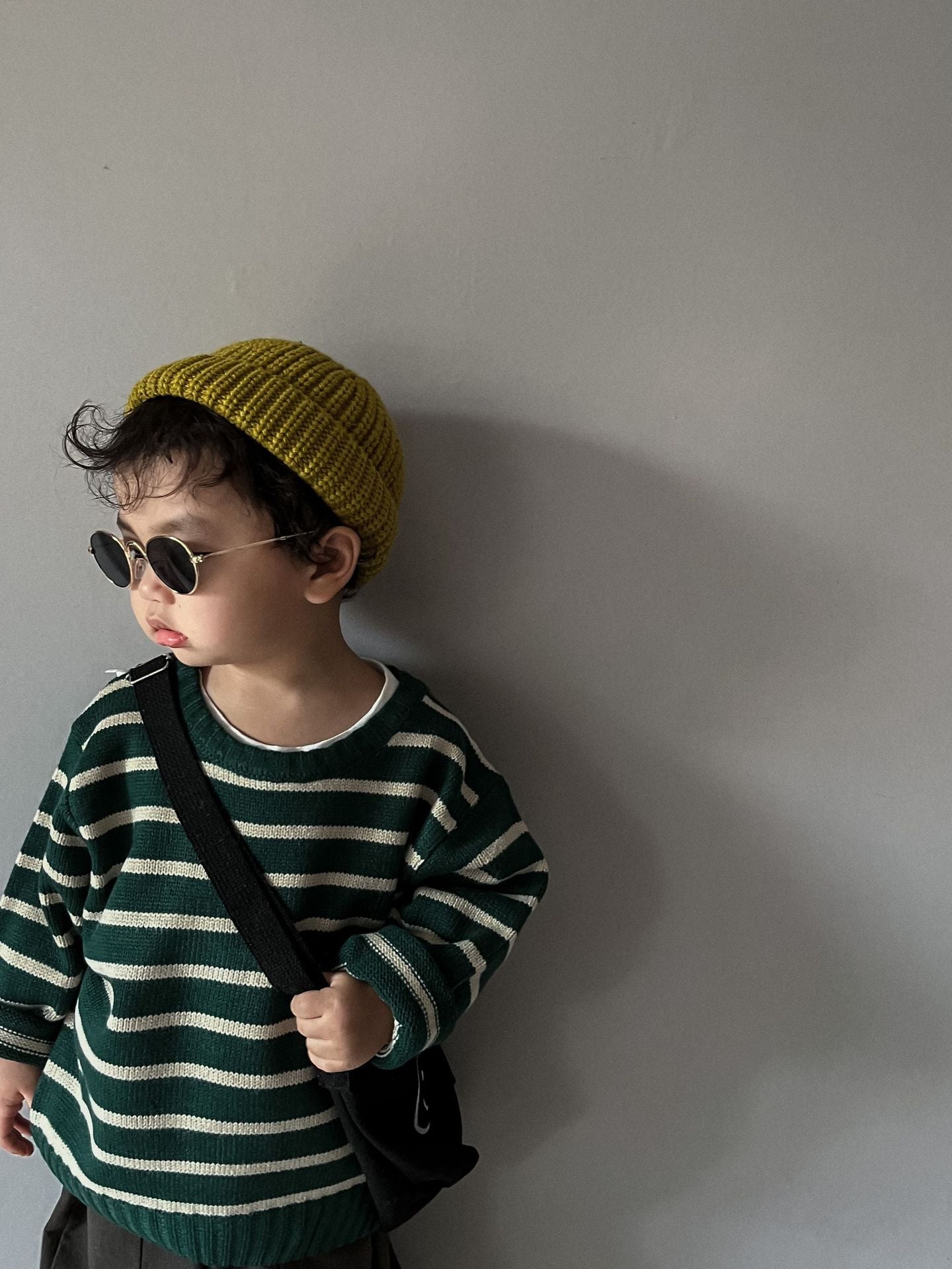 Unisex Kids' Casual Striped Long-Sleeved Knitted Cotton Pullover