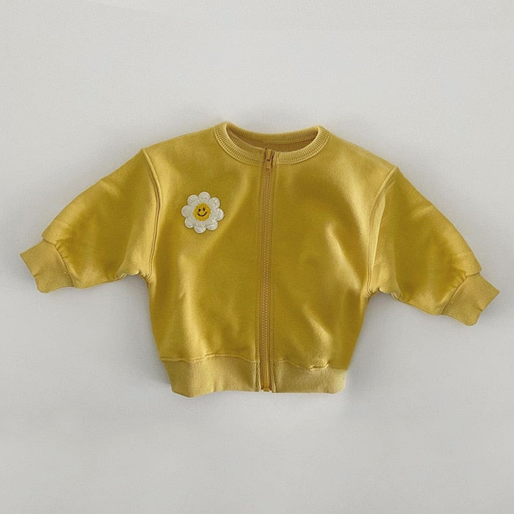 Our Sun Flower Zippered Jacket will be a stylish addition to your daughter's wardrobe. Crafted with high-quality cotton and a unique solid pattern, this jacket is perfect for any occasion. Featuring a snug fit and long sleeves, this jacket will keep your daughter snug and warm throughout the seasons. Get her this stylish and comfortable jacket today!