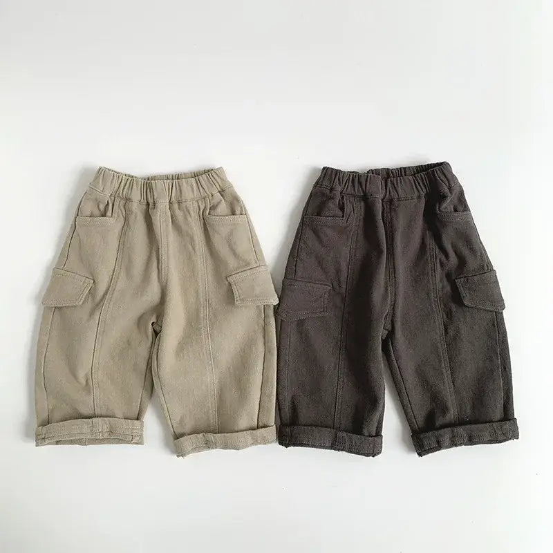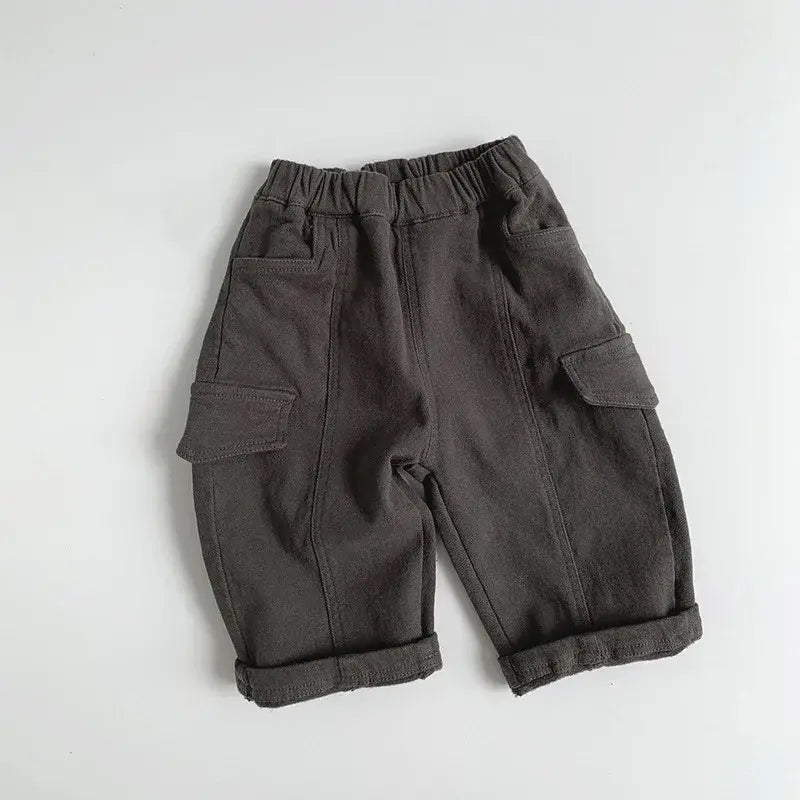 Keep your little adventurer cozy and stylish this winter with our Thick Cargo Solid Pants ❄️! Made from soft cotton and designed for kids aged 1 to 6 years, these unisex cargo pants offer a loose fit and mid-rise elastic waistband for ultimate comfort and mobility. Featuring handy pockets for all their treasures, these full-length pants are perfect for outdoor play or casual outings. Fits true to size, so they can run, jump, and explore while staying warm and comfortable all day long!