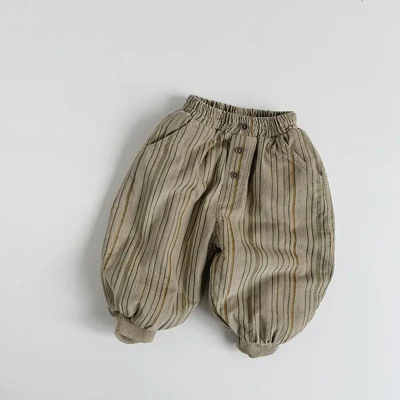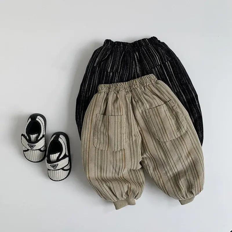 Keep your little one warm and stylish with our Thick Corduroy Casual Striped Pants! ❄️👖 Made from soft, thick cotton corduroy, these pants are perfect for chilly winter days, offering cozy warmth and comfort. The trendy striped pattern and relaxed harem fit give these pants a playful, casual style that both boys and girls will love. With an easy elastic waistband and handy pockets for tiny treasures, these pants are ideal for both playtime and outings. Perfect for kids aged 1-6 years, these mid-waist, full-length pants fit true to size and bring a touch of classic winter style to any outfit! 🌟🍁