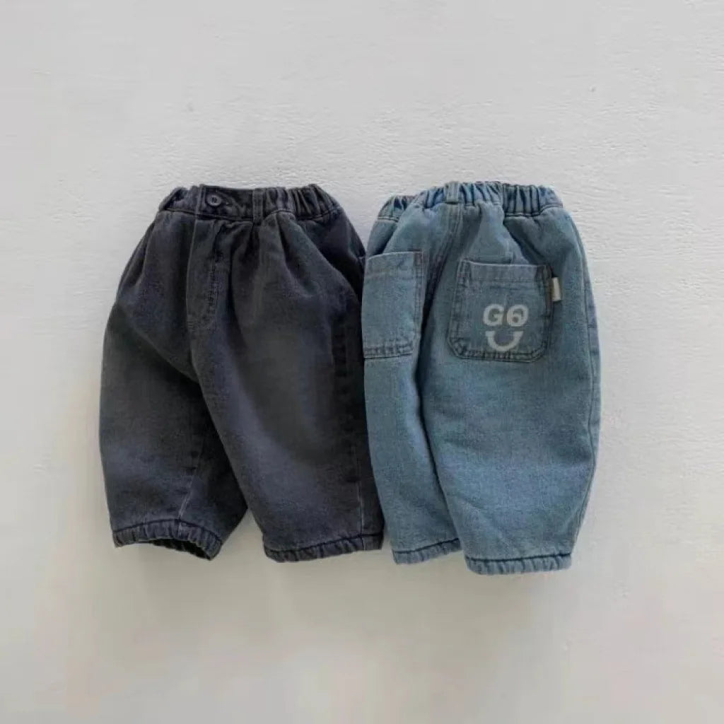 Introducing the Thick Fleece Retro Denim Pants, perfect for keeping your little one warm and stylish this winter! Made with high-quality cotton fabric, these pants provide ultimate comfort with a loose fit and midwaist design. The solid pattern adds a touch of retro charm to their casual style. Suitable for baby boys and girls aged 9–36 months, these full-length pants feature an elastic waist closure for easy dressing. Get ready for cozy adventures with these adorable and trendy denim pants! 🌟❄️👖
