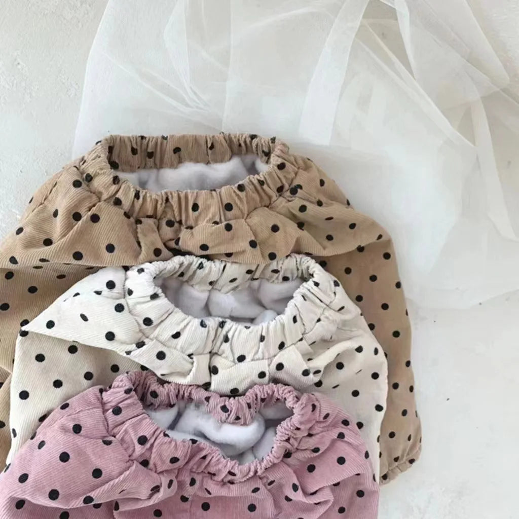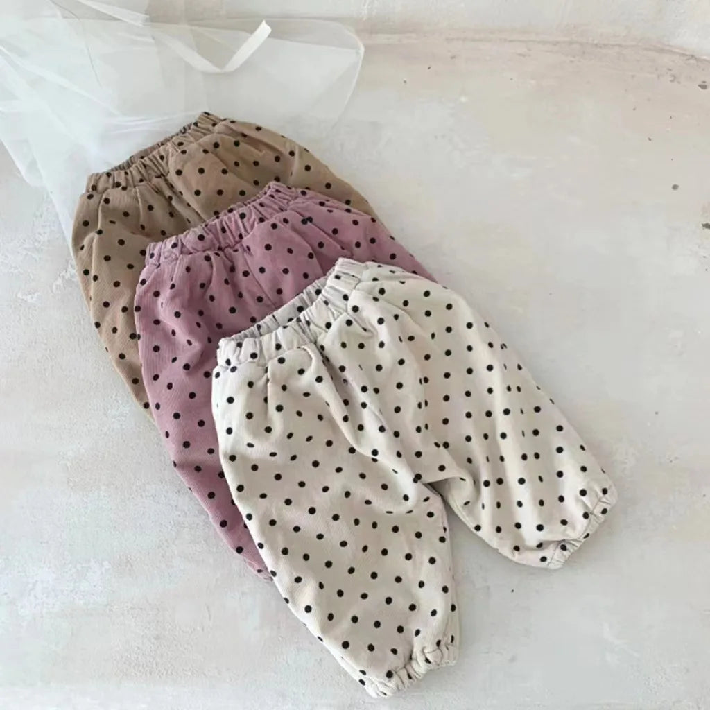 Turn up the cuteness and warmth this winter with our Thick Polka Dot Corduroy Pants! 🌟 Crafted from cozy cotton corduroy with an adorable polka dot pattern, these pants bring style and comfort to your baby's wardrobe. The loose fit and mid-waist elastic design ensure easy movement and a perfect fit for your little explorer. 🌈 Ideal for boys and girls aged 9–36 months, these pants pair wonderfully with your favorite sweaters, onesies, or jackets for effortless winter outfits. ❄️