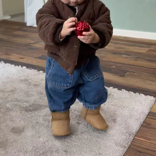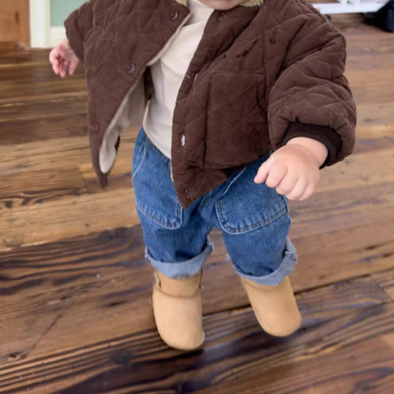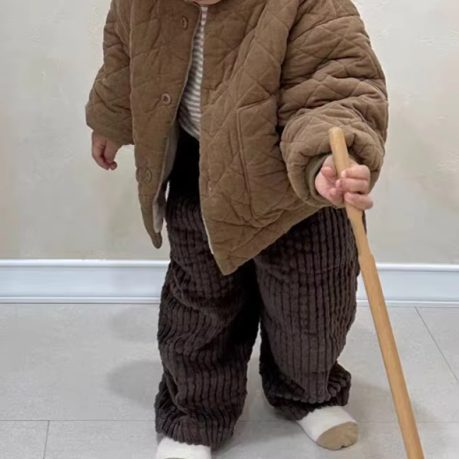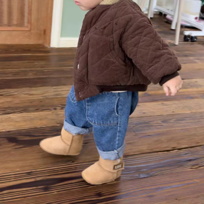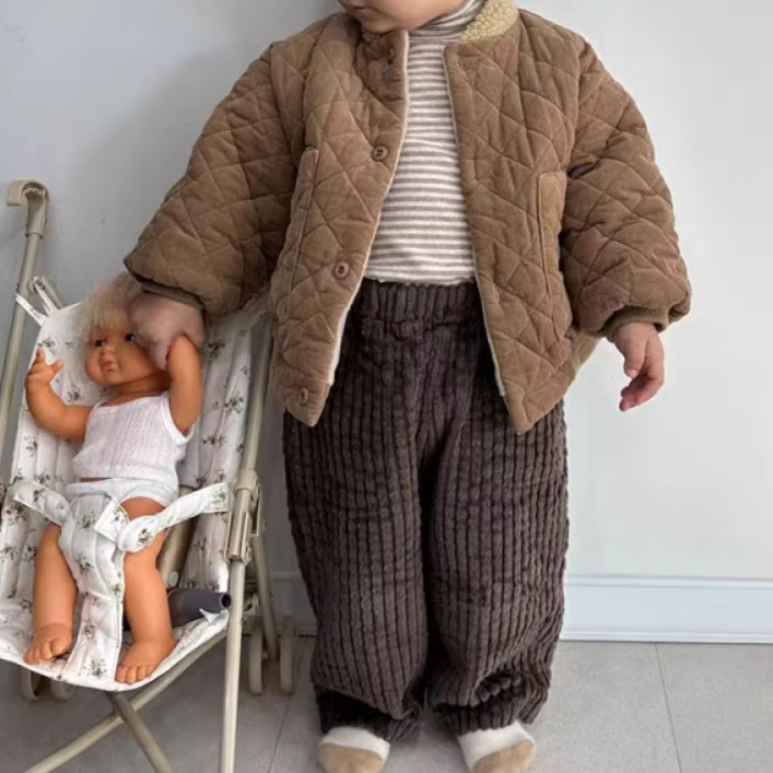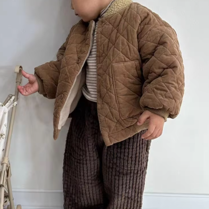 Keep your little one warm and comfortable with our Thick Quilted Fleece-Lined Jacket ❄️! Designed for boys and girls aged 9 to 36 months, this cozy jacket features a thick quilted cotton exterior and soft fleece lining, perfect for keeping out the winter chill. With its simple solid design and casual style, this unisex jacket is easy to layer over any outfit. The O-neck collar and regular long sleeves ensure a comfortable fit that keeps your baby snug all day long. Fits true to size—ideal for winter outings!