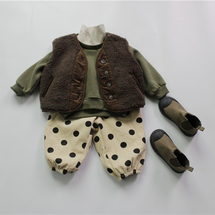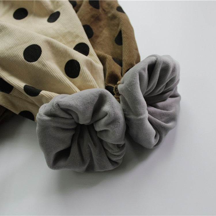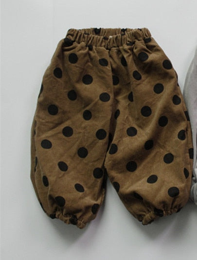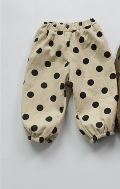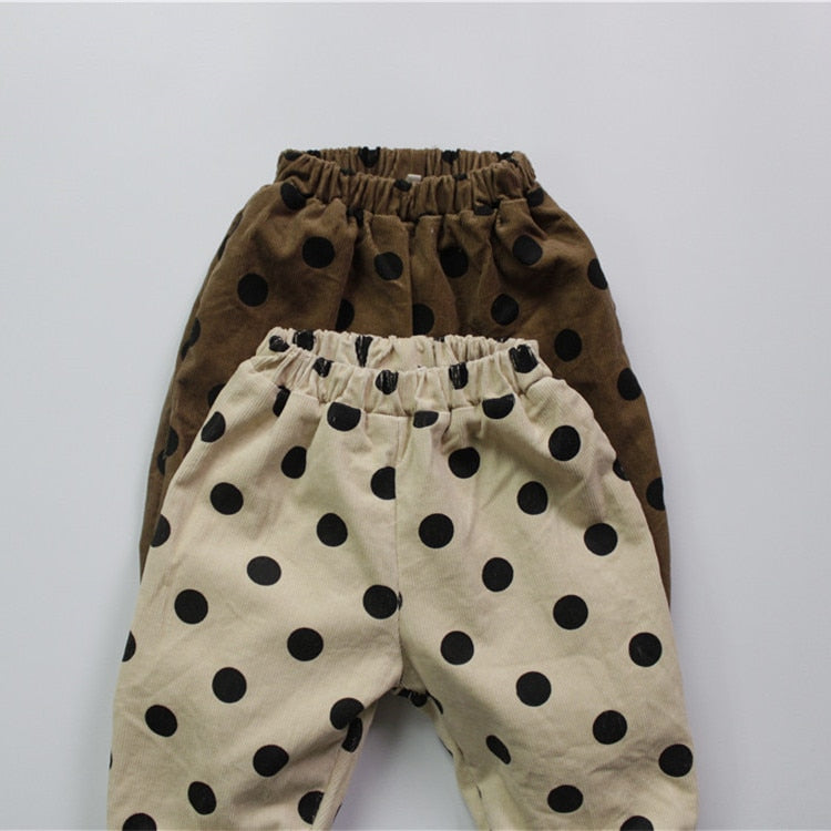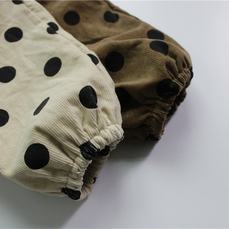 These full-length pants are crafted to offer a comfortable and relaxed fit that adheres to standard sizing. The elastic waist closure and strategically placed pockets enhance the convenience of these pants. Made of premium-quality cotton, they boast of a mid-waist and a chic polka dot pattern, making them an excellent choice for the winter season. The cross-pant design and pocket embellishments elevate the overall style and utility of these pants.