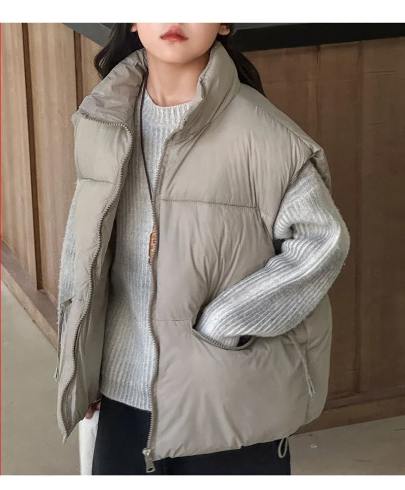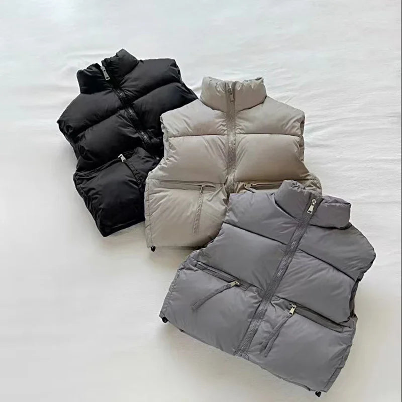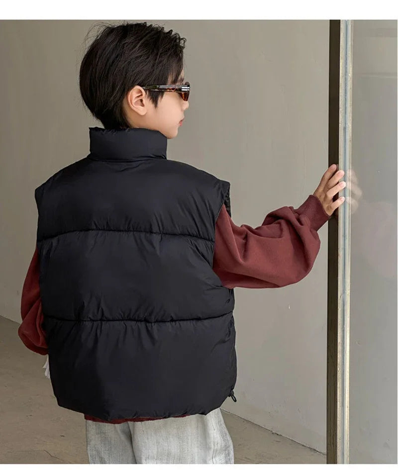 Bundle up in style with our Thick Winter Solid Puffer Vest! ❄️ This cozy winter essential brings warmth without bulk to active kids aged 3-9 years. Crafted from a premium blend of cotton, rayon, and polyester, this unisex vest offers superior insulation for chilly adventures. The versatile solid design makes it a perfect layering piece, while the true-to-size fit ensures comfort for all their winter explorations. Whether they're building snowmen, heading to school, or enjoying outdoor play, this thick puffer vest keeps their core warm while allowing freedom of movement! ✨