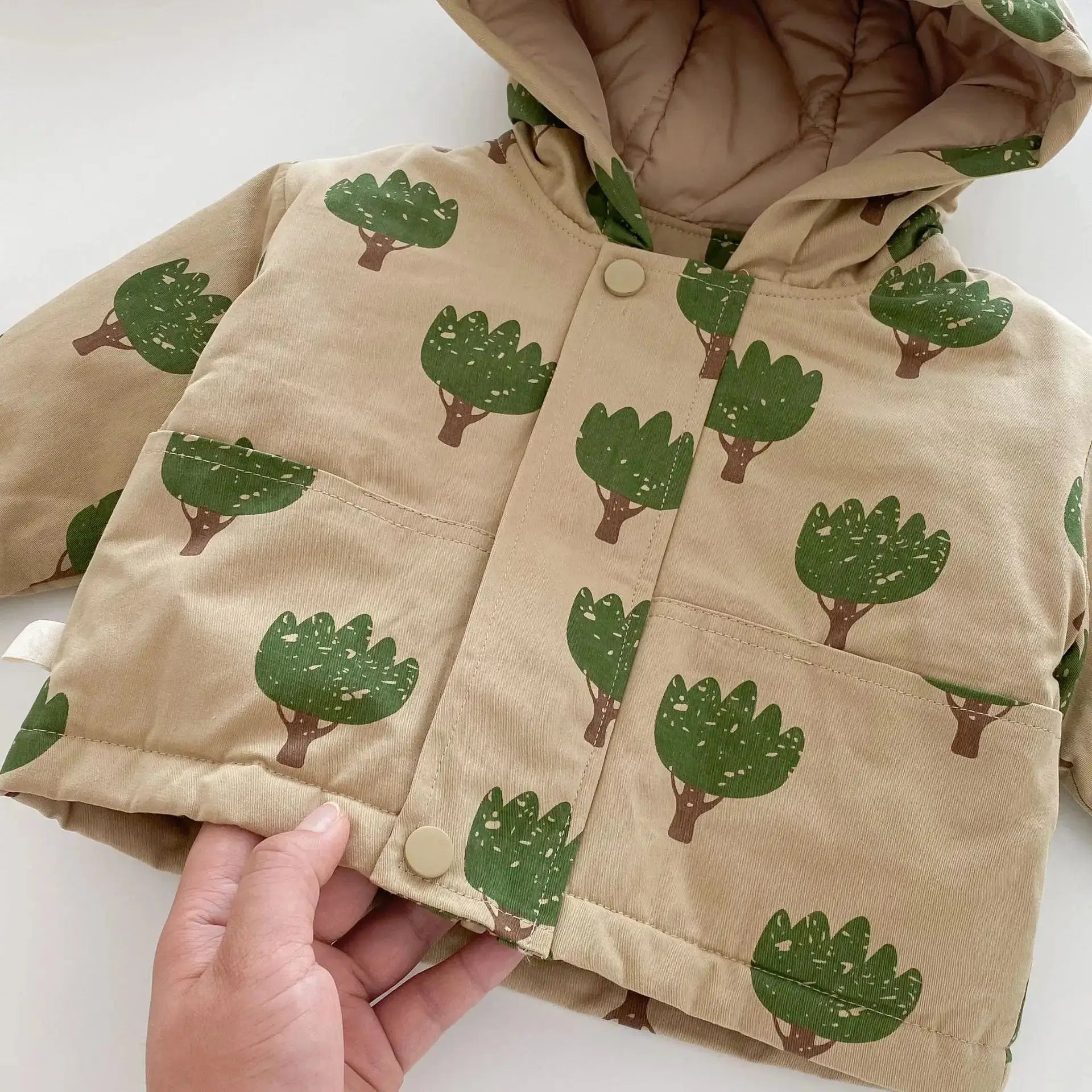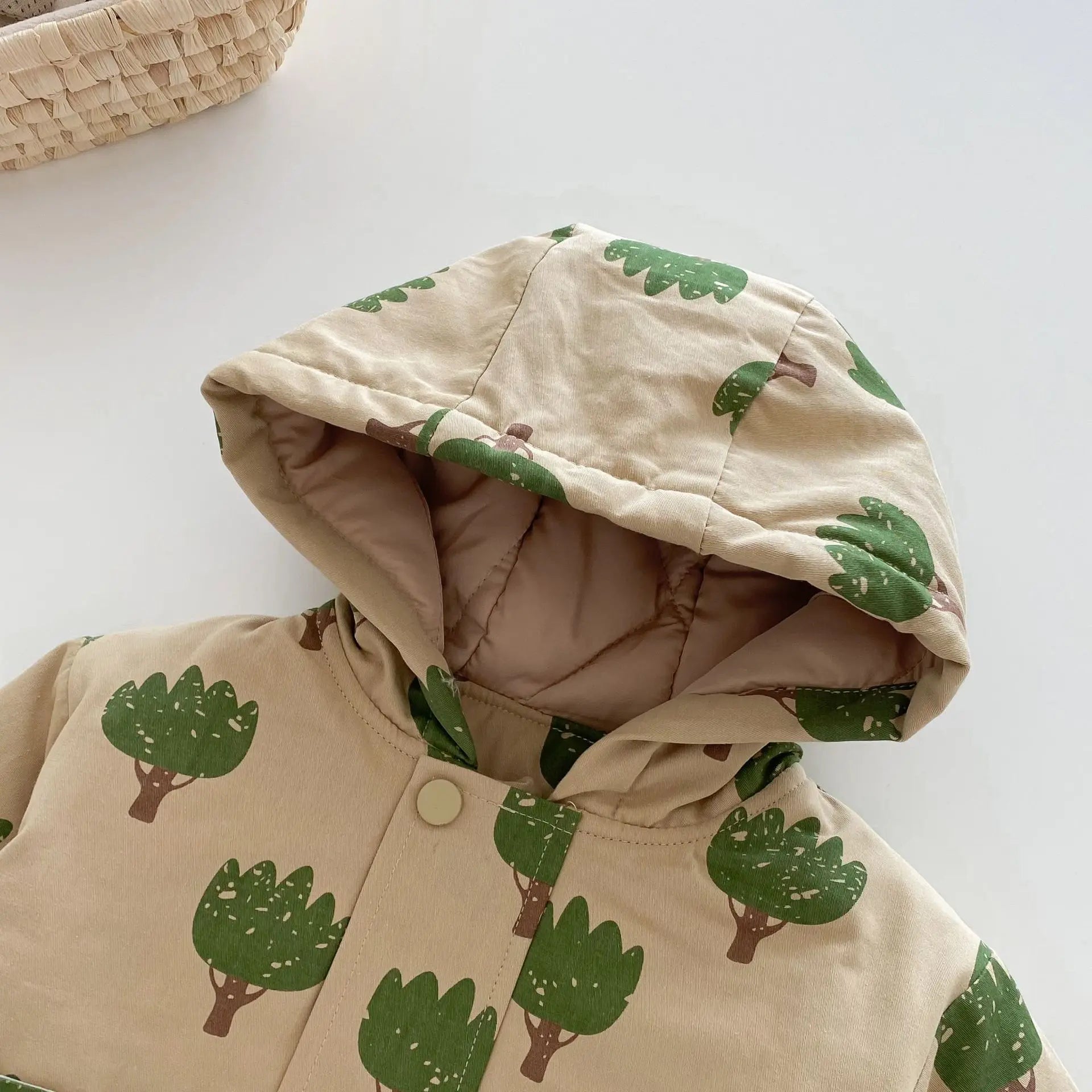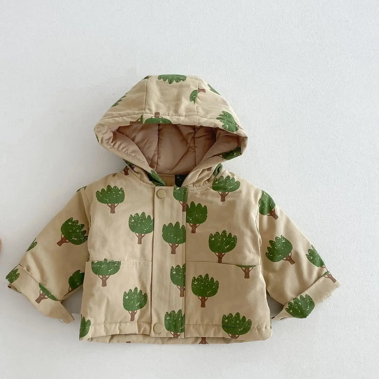 Get ready for autumn adventures with this cozy Tree-Print Hooded Winter Jacket! 🍁🌳 Perfect for little explorers aged 6 months to 5 years, this jacket combines style and warmth with its cute tree-print design and soft cotton-polyester blend. The hood adds extra protection, and the regular fit ensures comfort while your little one plays in the crisp air. Ideal for layering on chilly days! 🍂✨