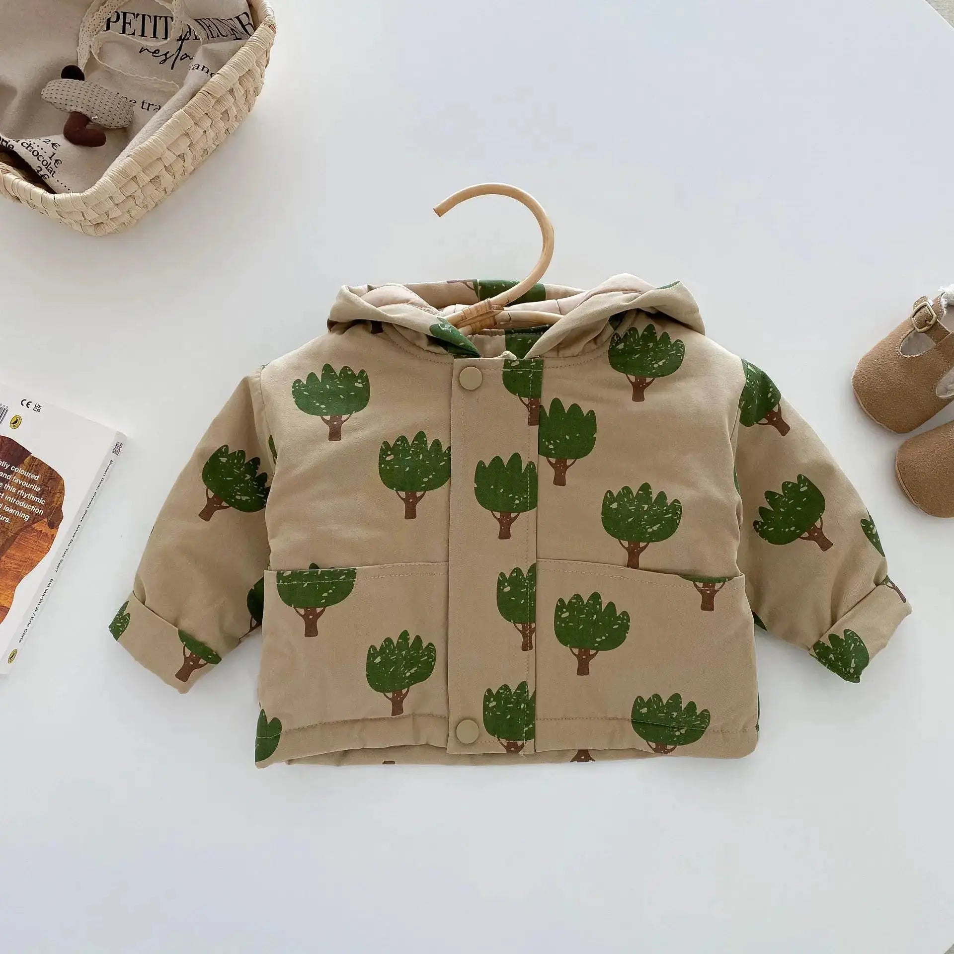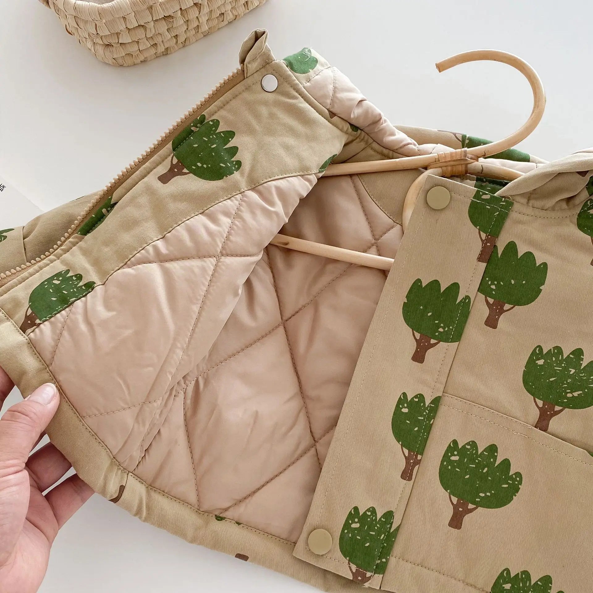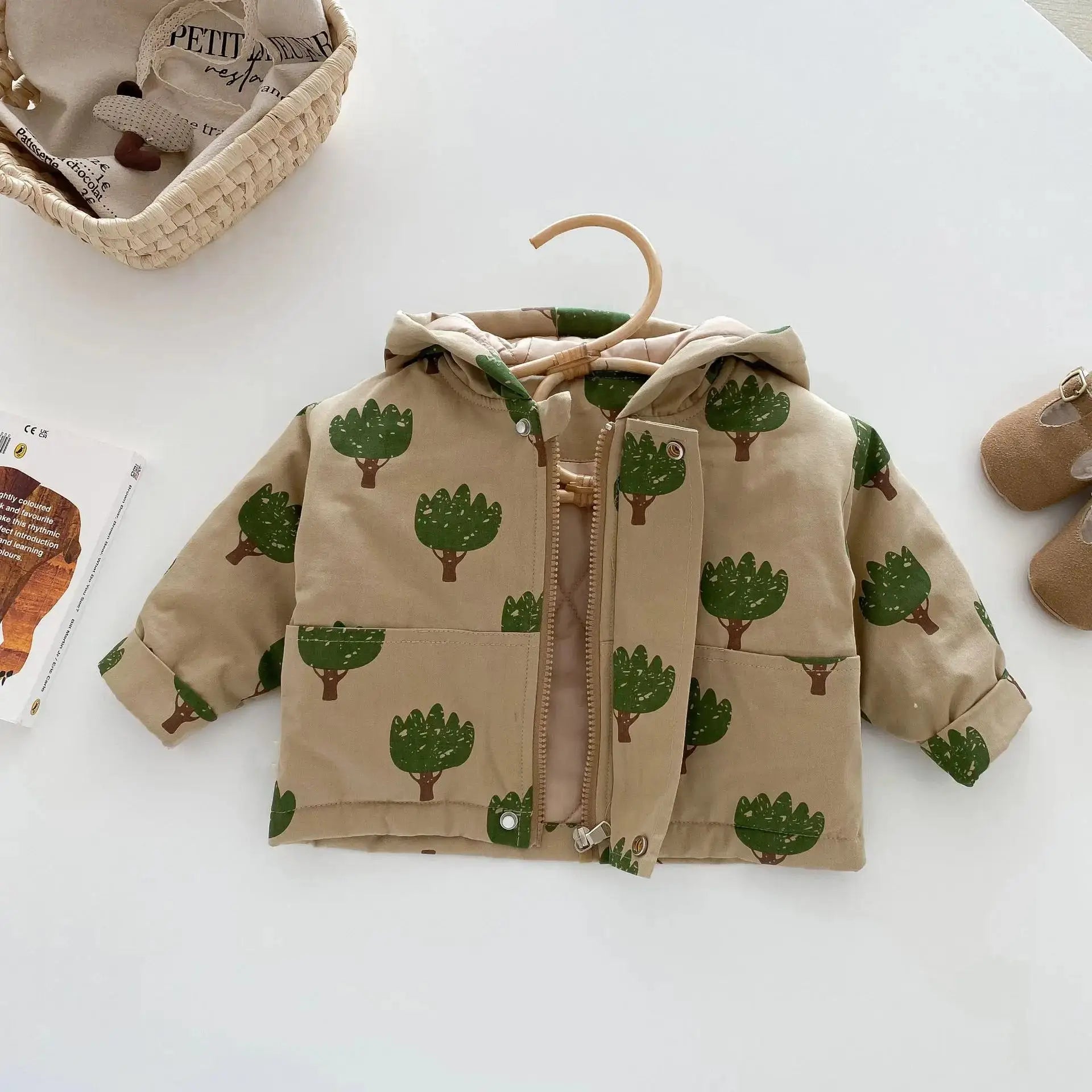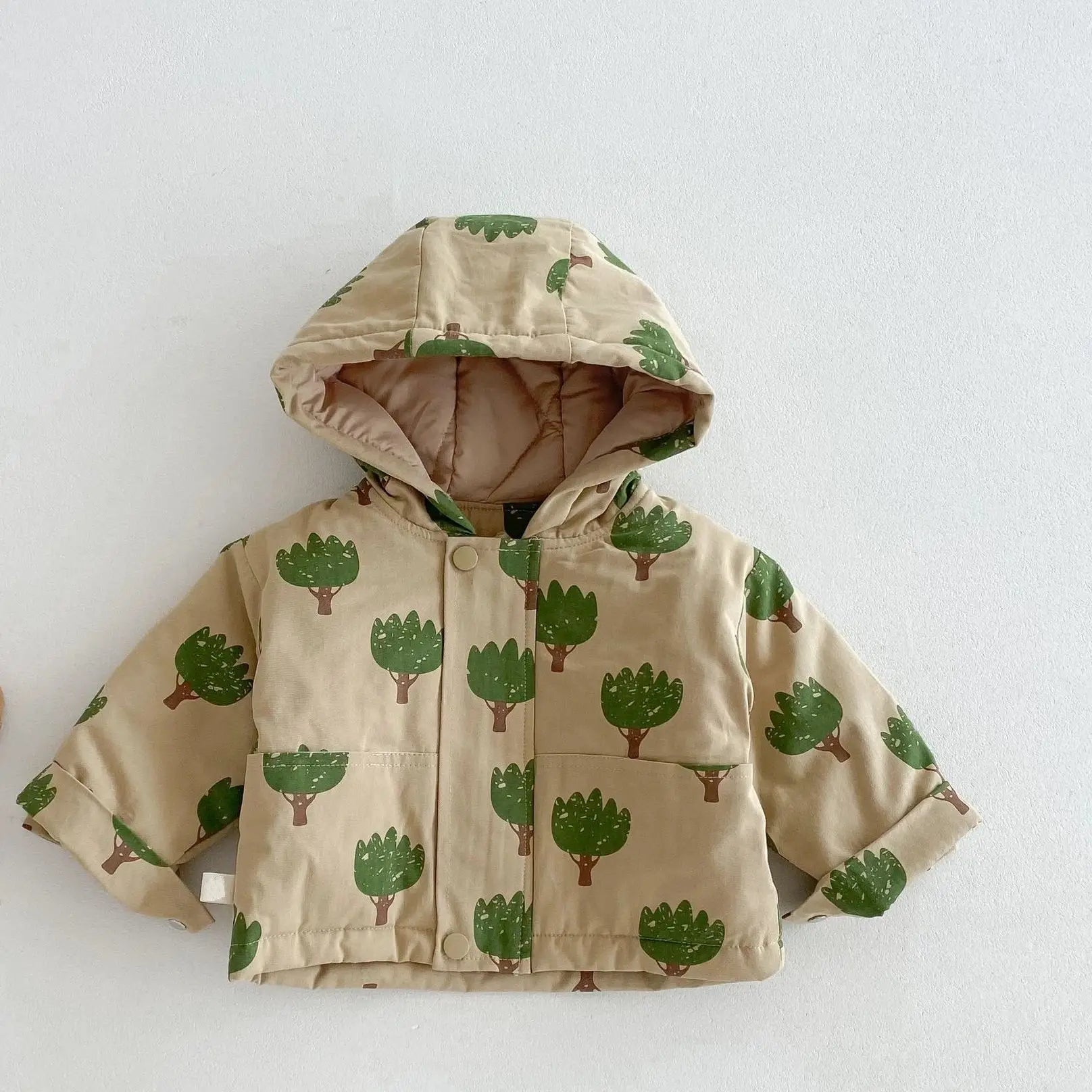 Get ready for autumn adventures with this cozy Tree-Print Hooded Winter Jacket! 🍁🌳 Perfect for little explorers aged 6 months to 5 years, this jacket combines style and warmth with its cute tree-print design and soft cotton-polyester blend. The hood adds extra protection, and the regular fit ensures comfort while your little one plays in the crisp air. Ideal for layering on chilly days! 🍂✨