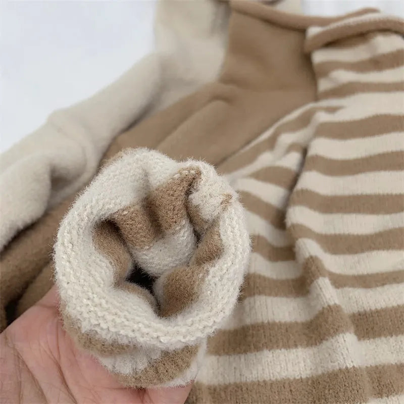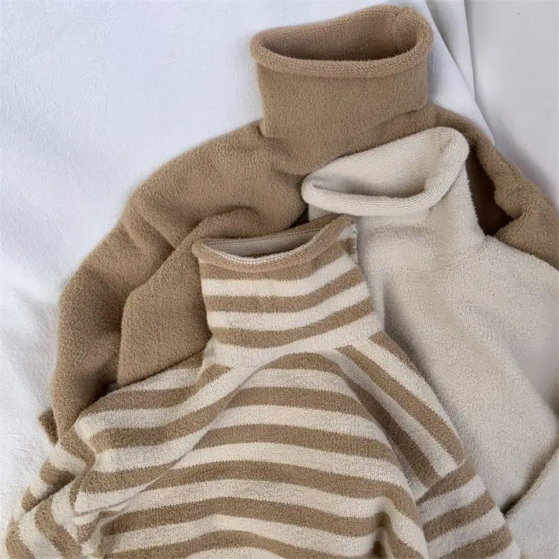 Stay cozy and stylish with our Turtleneck Wool Sweater! Crafted with a blend of wool and polyester, this casual sweater is perfect for kids aged 1-10 years. The striped and solid patterns add a touch of playful charm. With its pullover style and long sleeves, it's both comfortable and easy to wear. Our Turtleneck Wool Sweater fits true to size, ensuring a perfect fit for your little one. Embrace warmth and style this season with this must-have wardrobe staple. 🧥🔝
