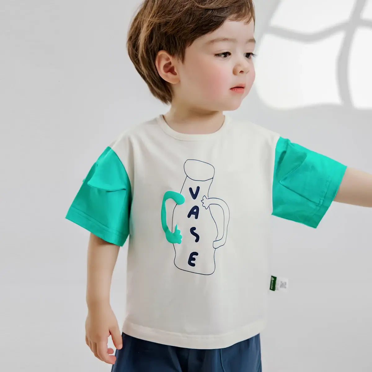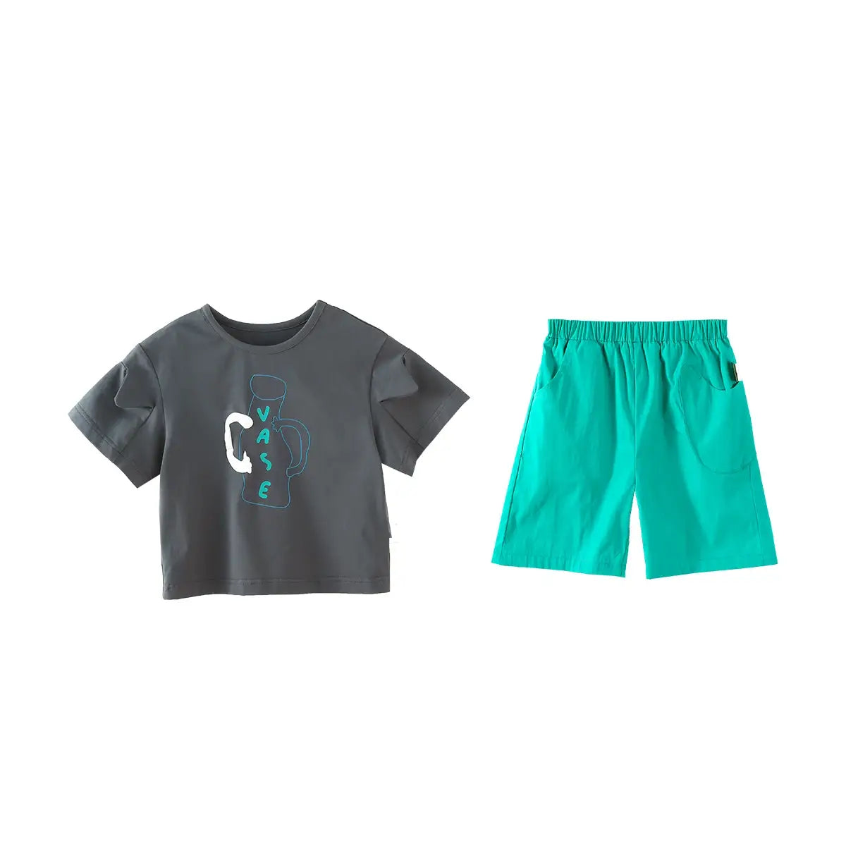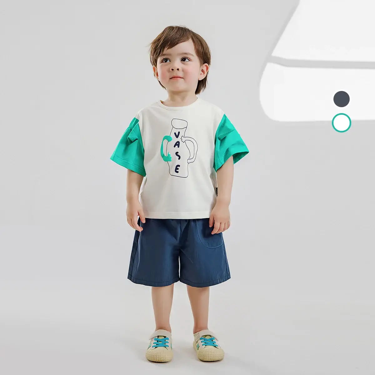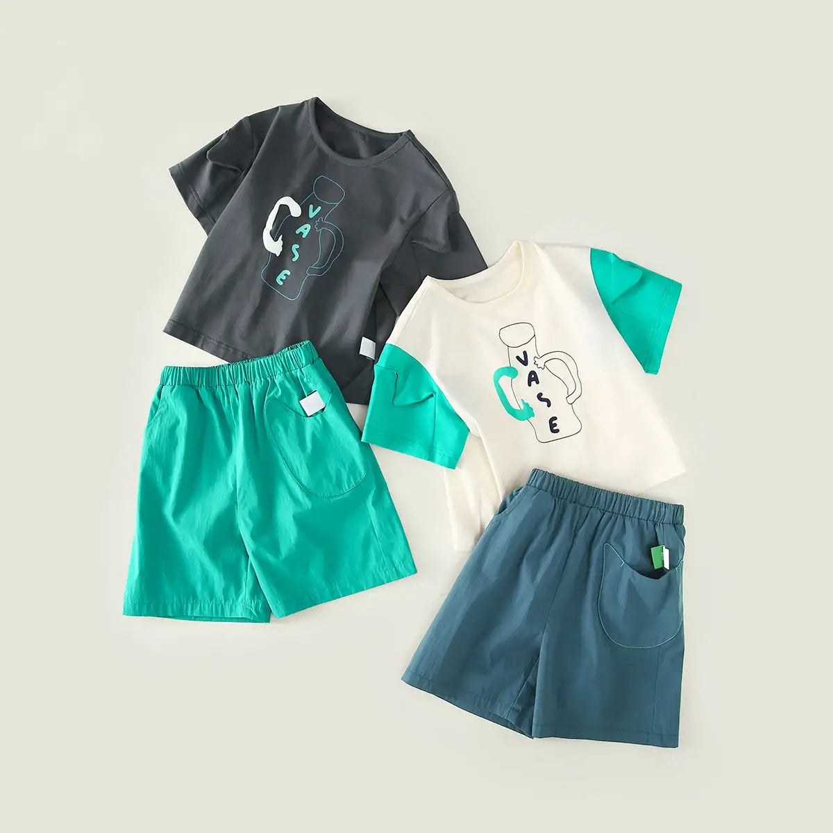 Unisex Vase Printed Printed Tee & Patchwork Shorts Set