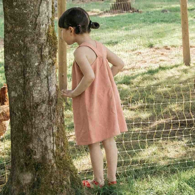 V-Back Linen Girls Dress