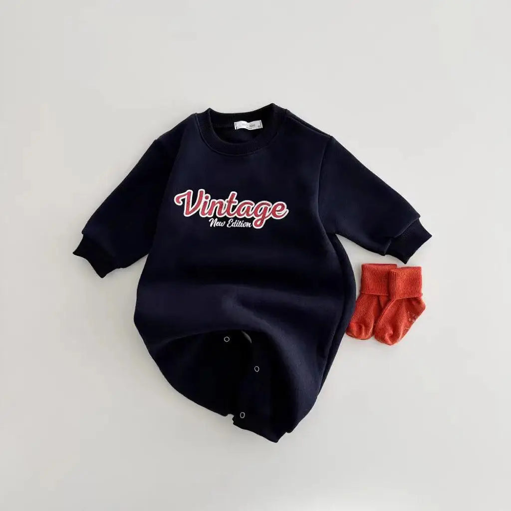 Introducing the 'Vintage' Letter Print Romper - where retro charm meets modern comfort. This long-sleeve romper brings a touch of classic style to your baby's autumn wardrobe while keeping them cozy all day long.