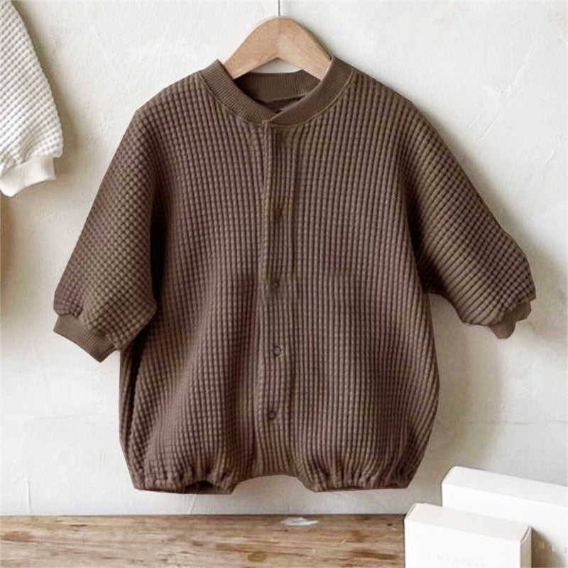 Introducing the Waffle Romper that's taking nurseries by storm! This textured cutie combines vintage charm with modern comfort. The waffle weave isn't just adorable – it's practical too (hello, extra breathability!). 🌟