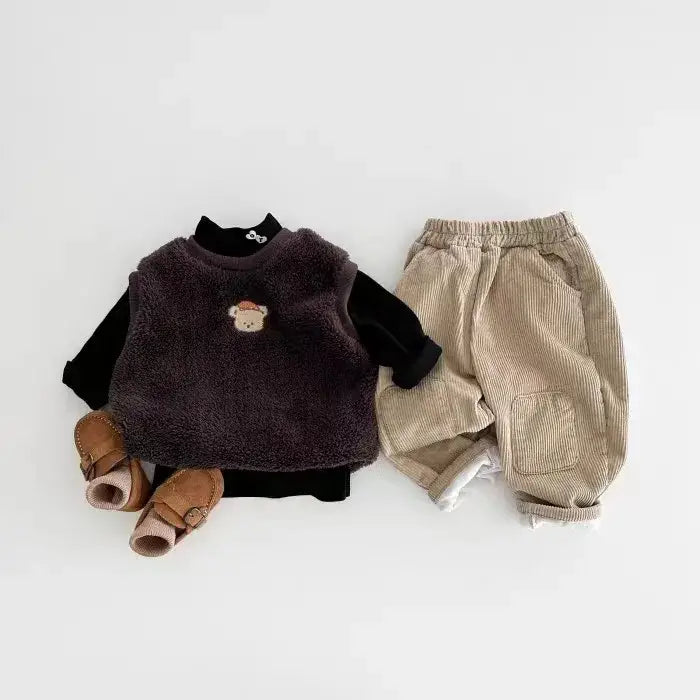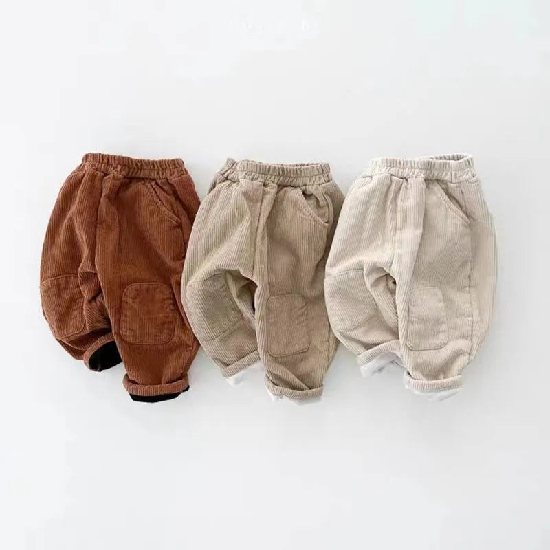 Keep your little one cozy and stylish this winter with our Warm Corduroy Solid Pants. Made from soft cotton, these pants are perfect for both boys and girls aged 9–36 months. The straight fit and mid-waist ensure a comfortable fit, while the patchwork pattern adds a touch of charm. With an elastic waist closure, getting dressed is a breeze. Whether it's playdates or family outings, these casual pants are a must-have for the colder season. ❄️👶👖