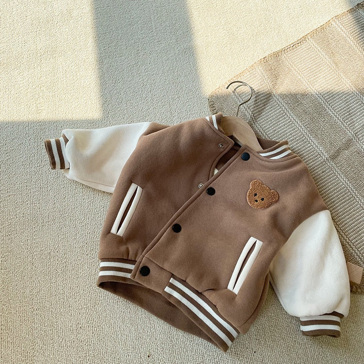 Hit a style home run with our Warm Fleece Baseball Uniform Jacket! ⚾ This sporty essential brings varsity vibes to little wardrobes with major league comfort. Crafted from cozy modal fleece that's perfect for the sidelines, this unisex jacket features classic baseball styling that makes every day feel like game day! The comfortable O-neck and long sleeves keep your tiny athlete warm during practice or play, while the true-to-size fit ensures they're ready to swing into action! 🏆