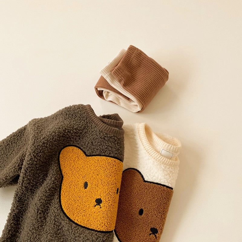 Transform your little cub into the snuggliest bear on the block! Our Warm Fleece Bear Cartoon Set is the winter wardrobe hero that combines maximum cuteness with cloud-like comfort. Get ready for endless "awwws!" ❄️