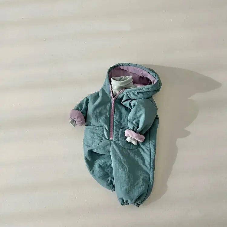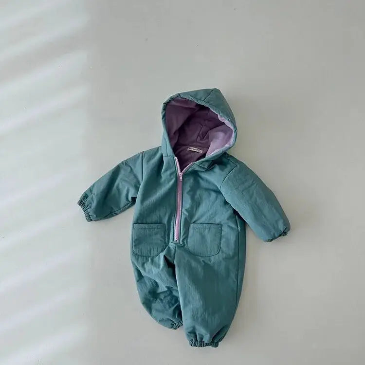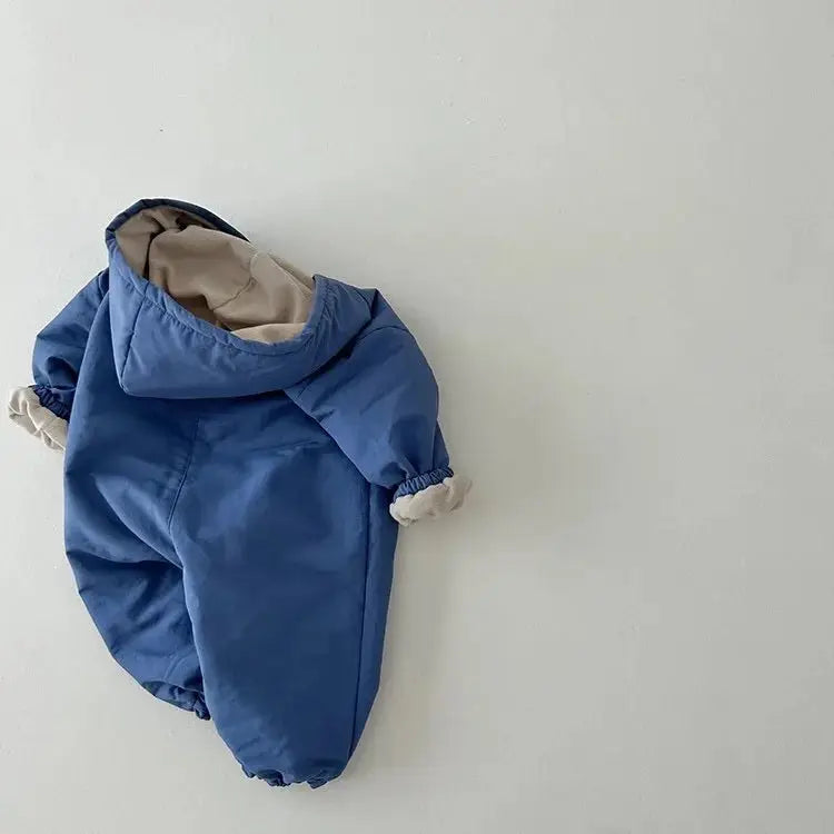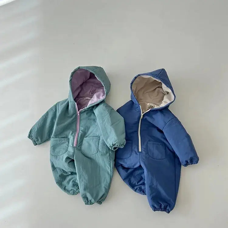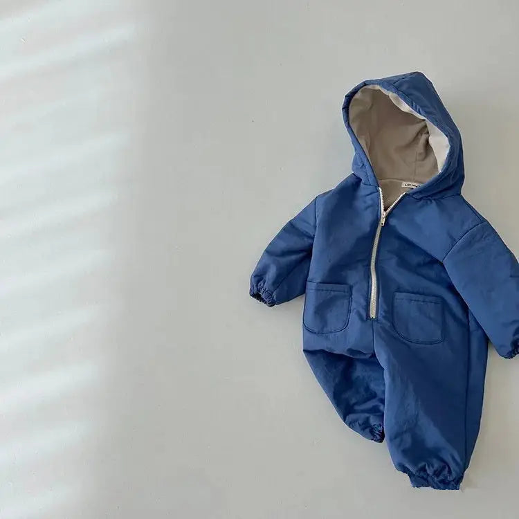 Keep your baby snug and stylish this winter with our Warm Hooded Fleece Romper! ❄️🧸 Designed for little ones aged 6 to 24 months, this unisex romper is crafted from soft, cozy cotton to provide ultimate warmth on chilly days. The hooded design and long sleeves offer extra comfort, while the convenient zipper closure makes dressing a breeze. 🌟👶 Perfect for layering and keeping your baby cozy and cute all season long!