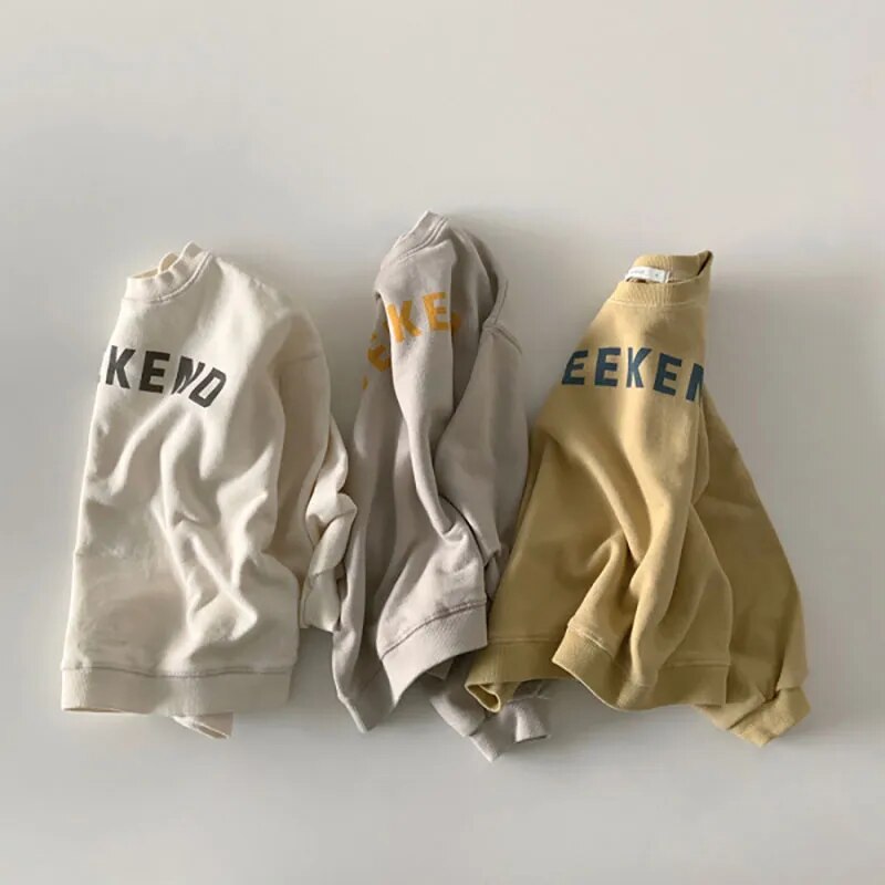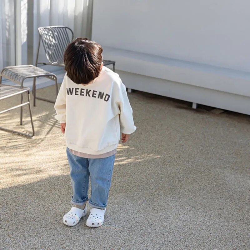 Introducing the 'WEEKEND' Casual Sweatshirt - perfect for any season! Crafted with 100% cotton material, this unisex sweatshirt is both comfy and stylish. Featuring a long sleeve length, it's sure to keep your little one warm and cosy! With a regular fit that follows their natural shape, the 'WEEKEND' Sweatshirt is a must have to keep your child looking fashionable!