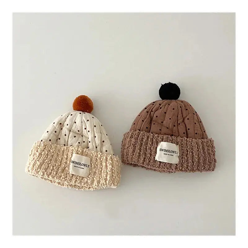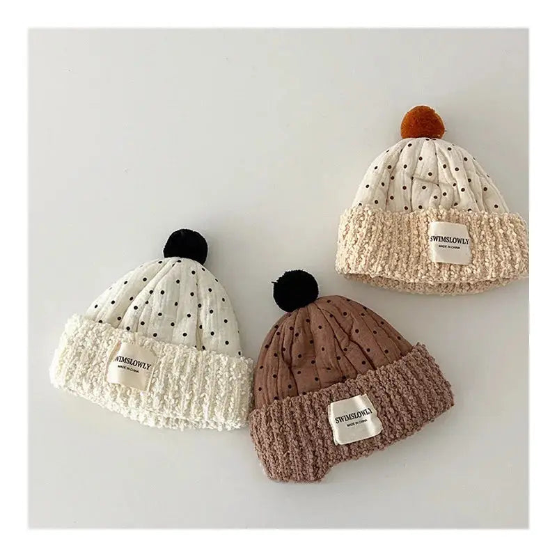 Plush Polka Dot Baby Beanies